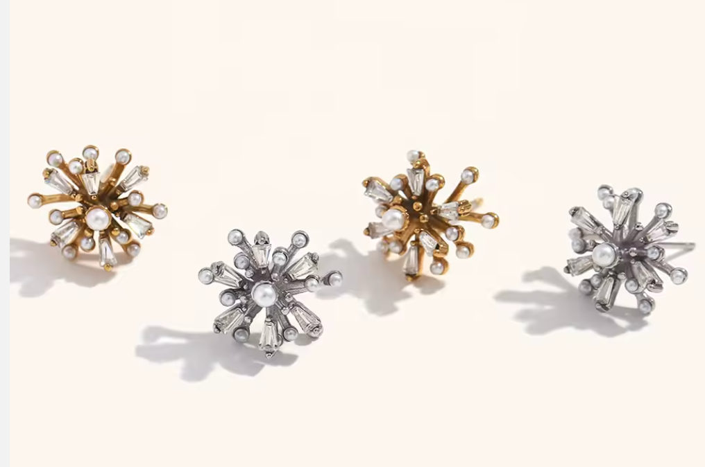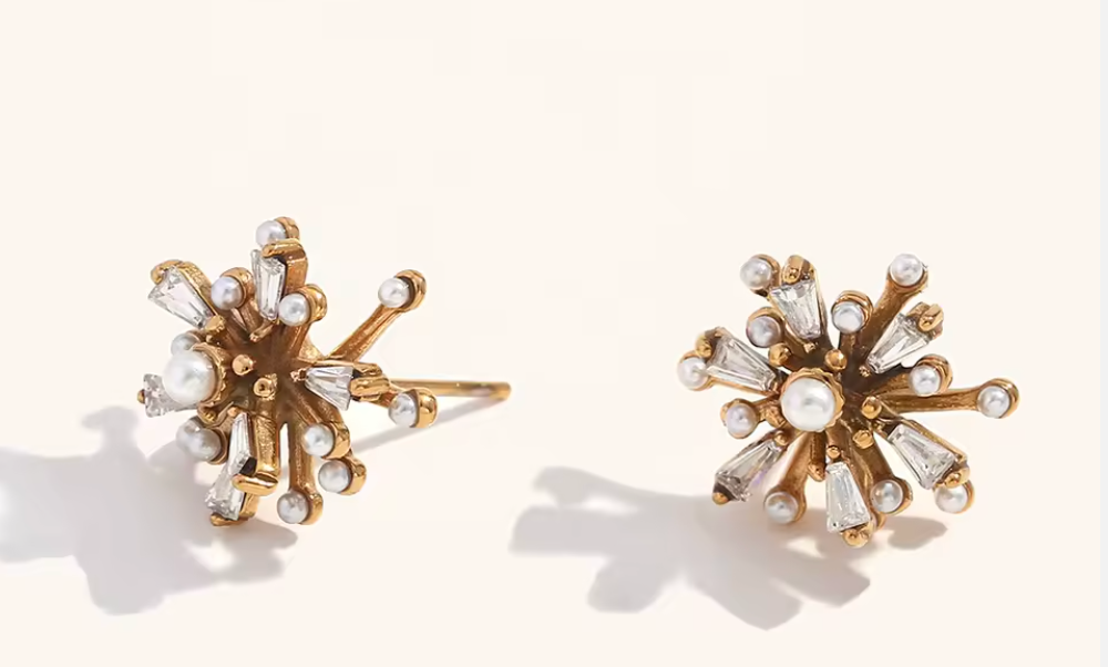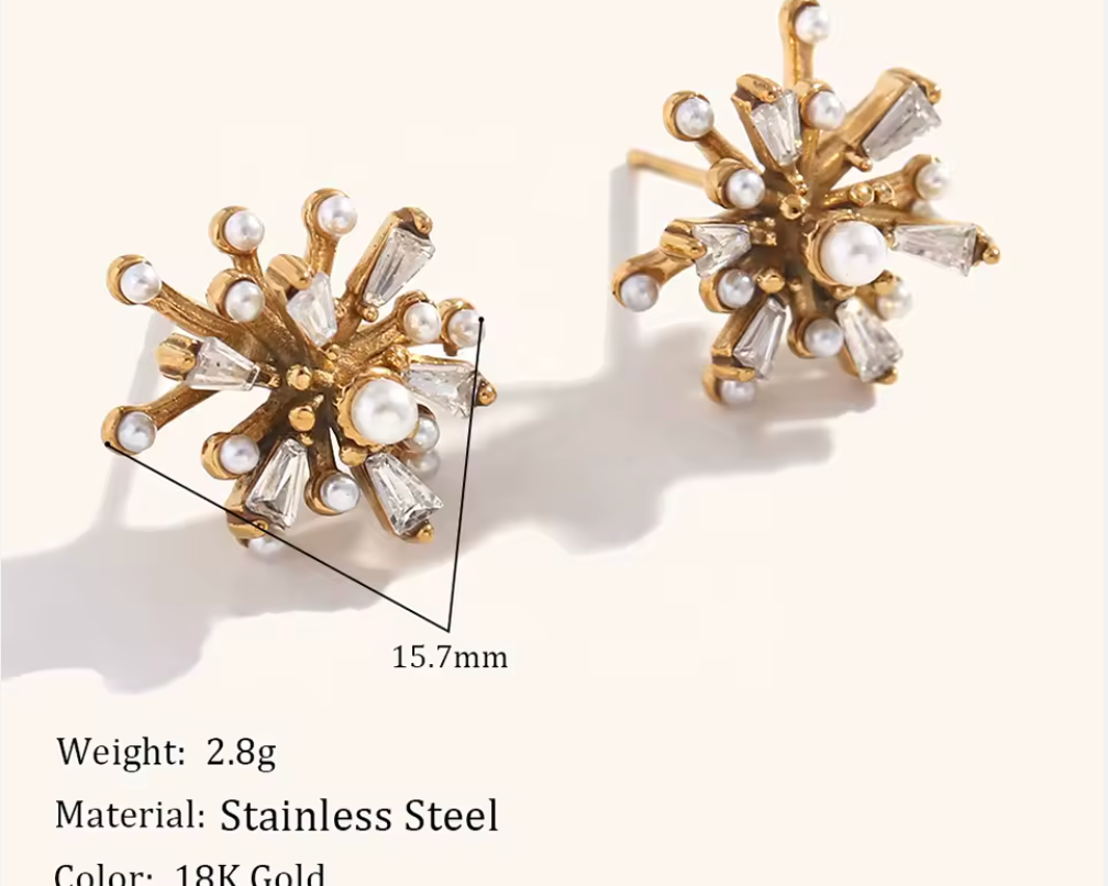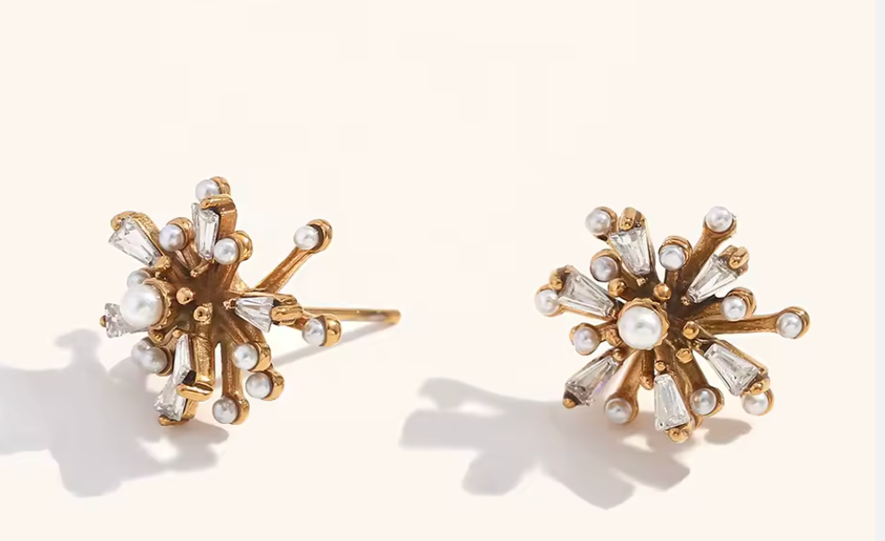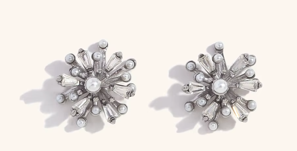 The Estelle Earrings are a modern nod to vintage glamour — featuring a radiant starburst silhouette adorned with delicate pearls and shimmering crystals. Designed to capture the light from every angle, they bring an effortless touch of sophistication to any moment.